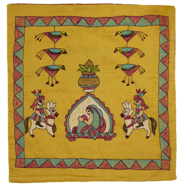 Folk Procession Sujni Handmade Cushion Cover