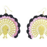 The Midnight Rose Peacock Earrings blend a delicate palette of black and pink with a beautifully etched brass peacock. The contrast between dark and light shades in the crochet work brings out the gold of the brass, making them ideal for casual as well as festive wear.