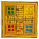 A playful tribute to board games, this mustard cover mimics the Ludo layout using Sujni stitching. Perfect for kids’ rooms or creative spaces.
